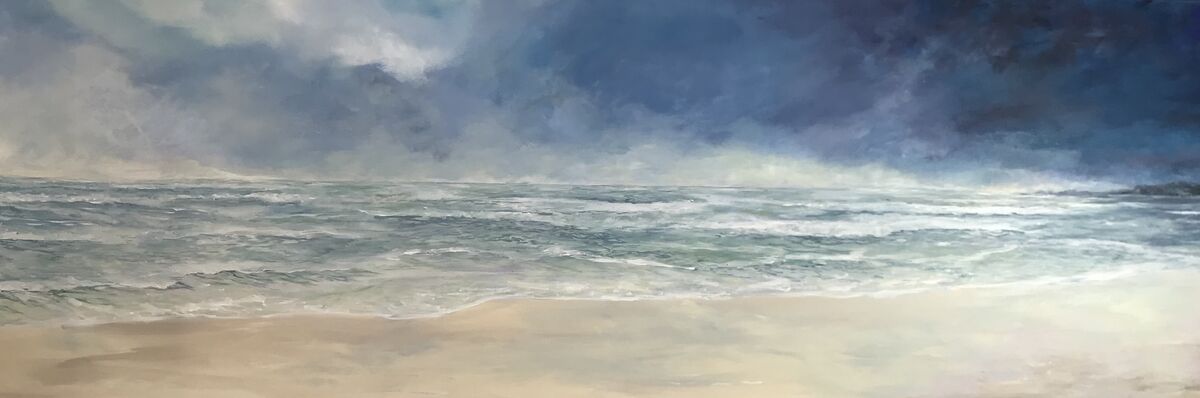 This work is perfect for beach lovers who want to feel the ocean in their home. I have used moody blues and soft creams to create a calming impact. This large piece is perfect size above a queen or king bed or lounge. The work comes framed in a handcrafted timber frame.